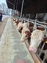 Die Führung beginnt im Offenstall es gibt Bullen verschiedener Größen, immer in gleichaltrigen Gruppen. Sie bleiben bis zur Schlachtung und werden im Hofladen vermarktet als Fleisch als Wurst. Aber auch im Restaurant.