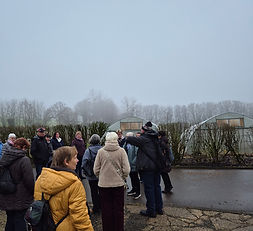 Frau Schneider und Frau Wolf teilten die Teilnehmer in 2 Gruppen auf und erklären den Hof den Pater Jansen im Jahr 1898 in St Wendel erwarb. Seid dieser Zeit ist der Hof ein landwirtschaftlicher Betrieb, Ausbildungs - und Begegnungsstätte. Ein Erbe wo sich Menschen begegnen, Alt und Jung, nicht behinderte und behinderte Menschen. 100 beeinträchtigte Menschen finden Arbeit und Beschäftigung .